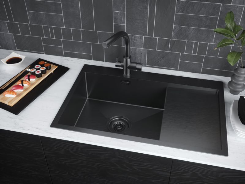 Мойка кухонная Paulmark Elde PM807851-GML левая воронёная сталь купить