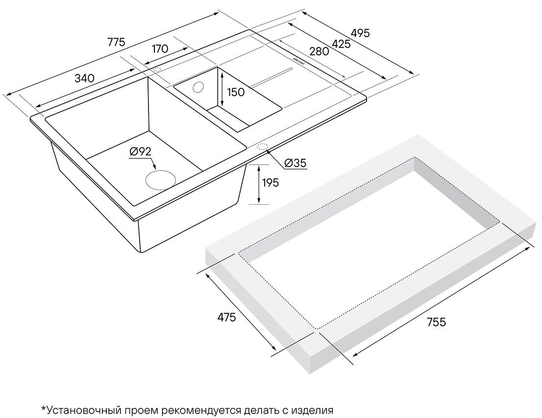 Материал мойки устойчив к механическим повреждениям, а также выдерживает температуру до 180 градусов.