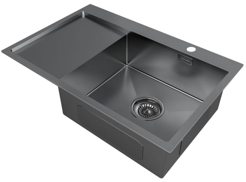 Мойки ATLAN R в оттенке GM имеeт прочное PVD покрытие, которое нанесено на нержавеющую сталь. Оно особенно устойчиво к появлению царапин и истиранию, не содержит микротрещин и является экологически чистым.Функциональное плоское крыло; Готовое отверстие для кухонного смесителя.Имеет шумопоглощающее покрытие Stille® на внешней стороне чаши;