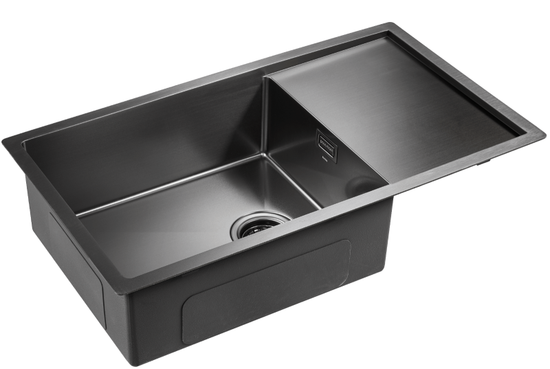 Мойка кухонная из нержавеющей стали, PM807844-GM304-ая аустенитная нержавеющая сталь имеет низкое содержание углерода. В составе мойки содержится 18% хрома и 8% никеля, что делает данную мойку из нержавеющей стали не подверженной деформации и обеспечивает прекрасные эксплуатационные характеристики.Мойки PLATTE в оттенках BG и GM имеют прочное PVD покрытие, которое нанесено на нержавеющую сталь. Оно особенно устойчиво к появлению царапин и истиранию, не содержит микротрещин и является экологически чистым.Имеет шумопоглощающее покрытие Stille® на внешней стороне чаши;