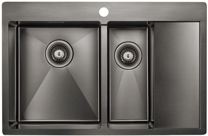 Мойка кухонная Paulmark Union PM537851-GML левая воронёная сталь купить