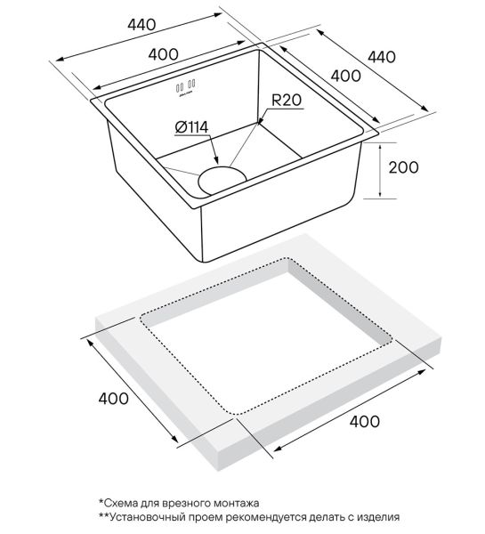 Мойка кухонная из нержавеющей стали, PM304444-BS.Изготовлена из 304-ой аустенитной нержавеющей стали, имеющей низкое содержание углерода. Нержавеющая сталь AISI 304 легирована 18% хрома и 8% никеля, что делает данную мойку не подверженной деформации и обеспечивает прекрасные эксплуатационные характеристикиНе подвержена деформации;
