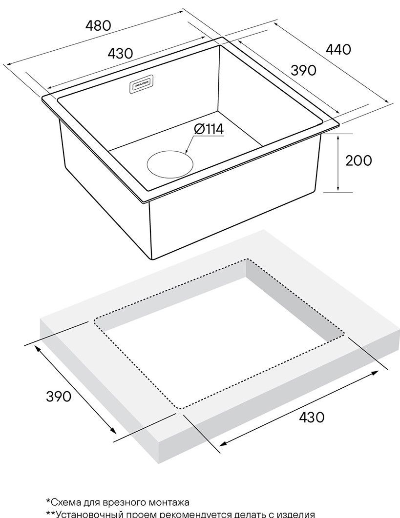 Мойка кухонная Paulmark Wesser PM804844-BS брашированная нержавеющая сталь