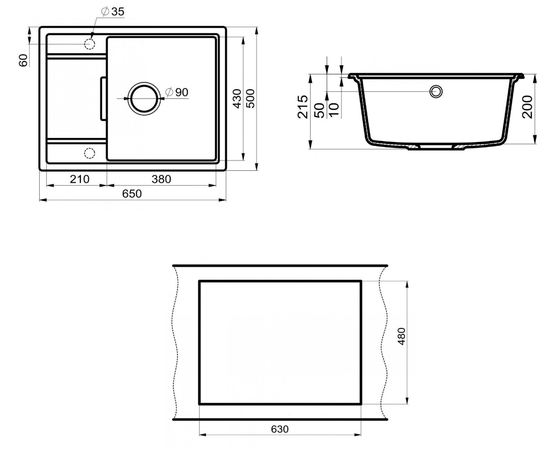 Отверстие под смеситель - нет, намечены 2 отверстия
