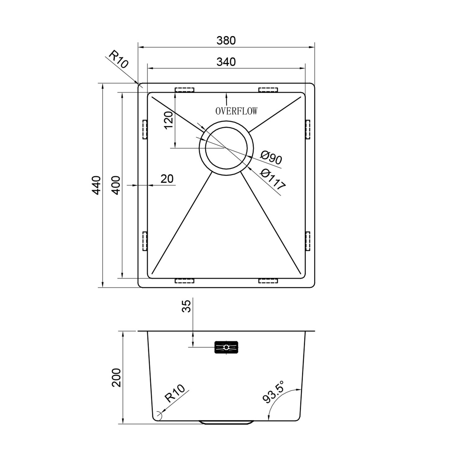 Размер чаши, мм: 340x400