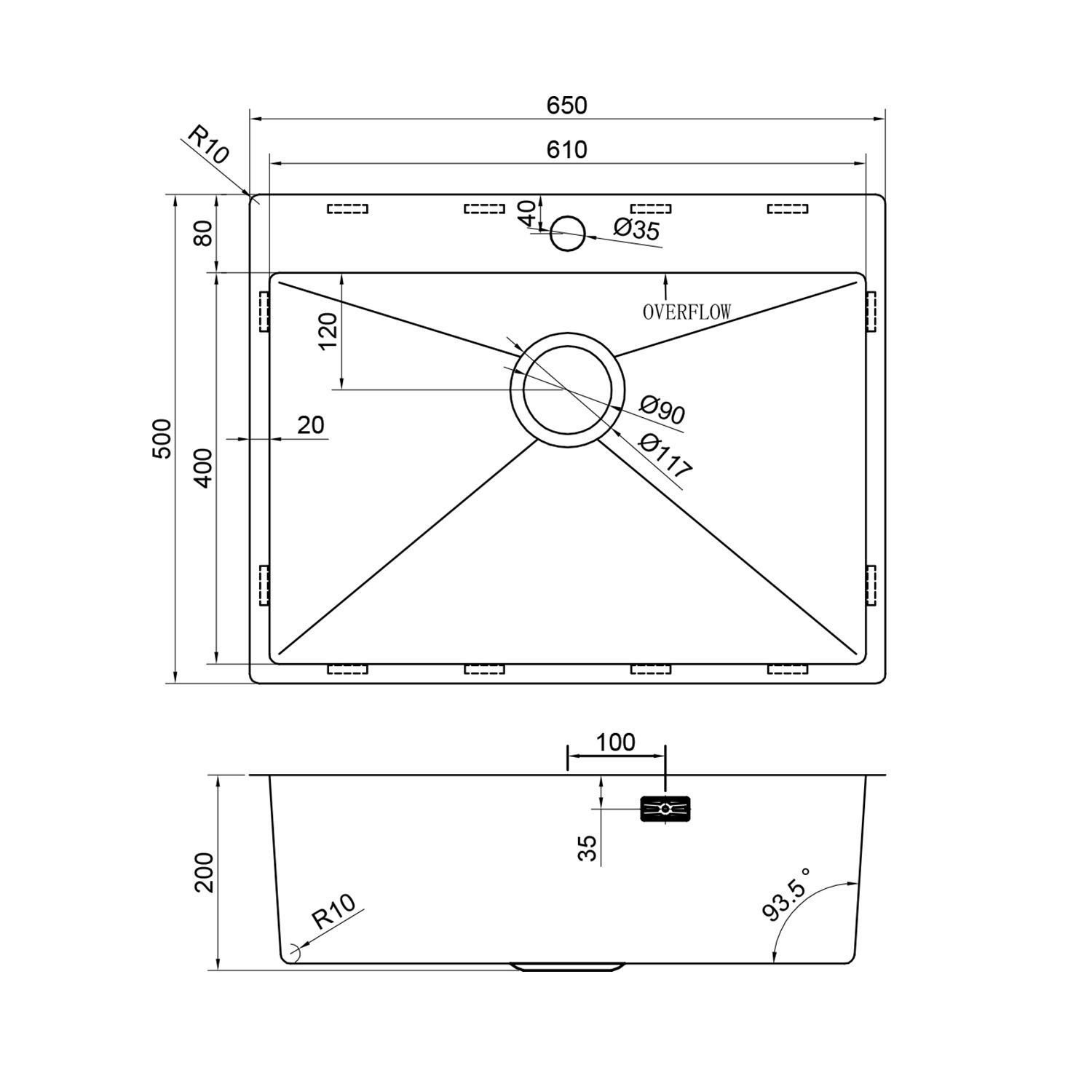 Размер чаши, мм: 610x400