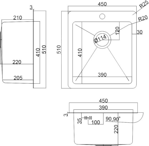 • Отверстия под смеситель: