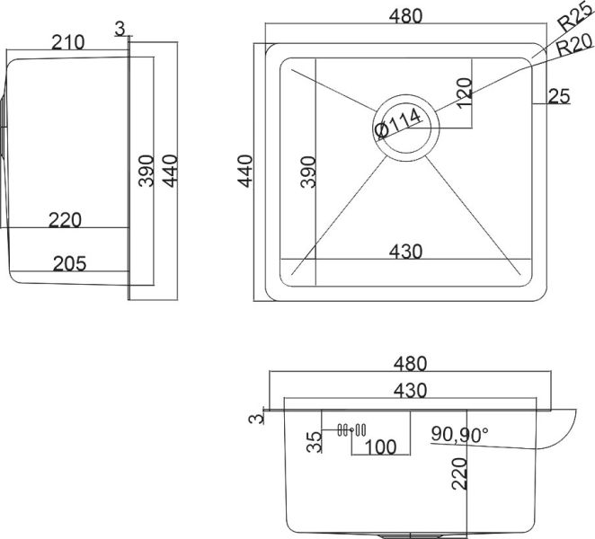• Отверстия под смеситель: