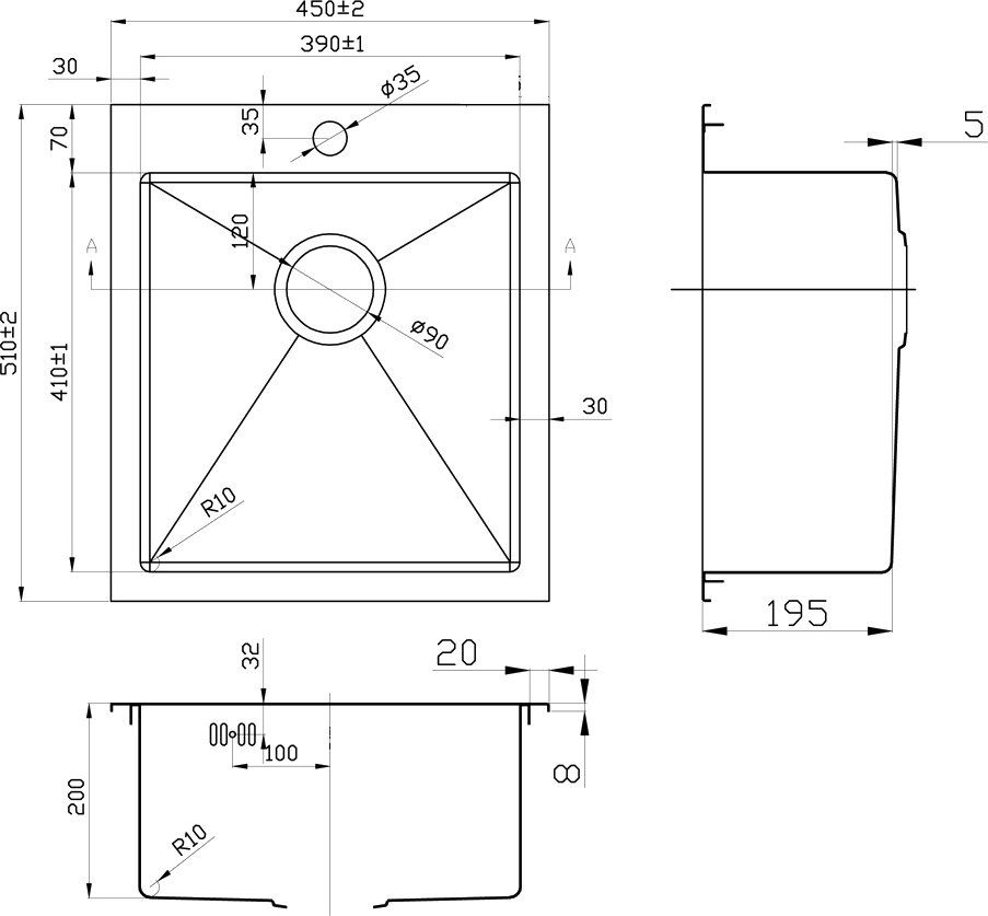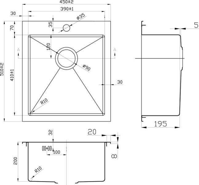 • Отверстия под смеситель: