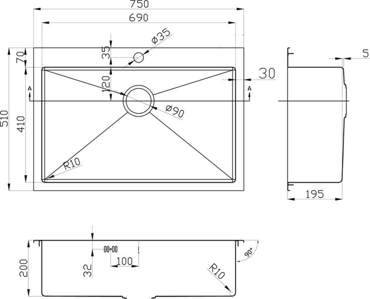 • Отверстия под смеситель: