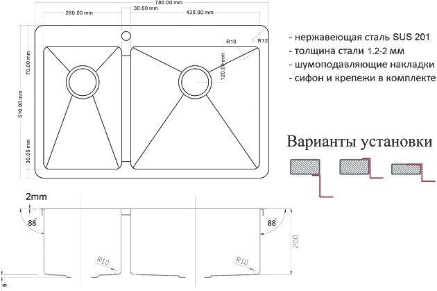 Мойка кухонная Zorg Light ZL R 780-2-510-R