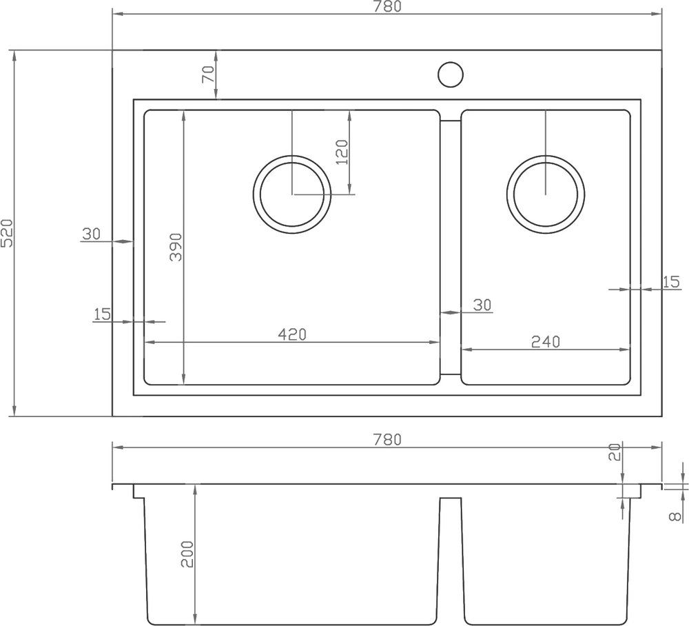 Мойка кухонная Zorg Master ZM N-78-2-52-L