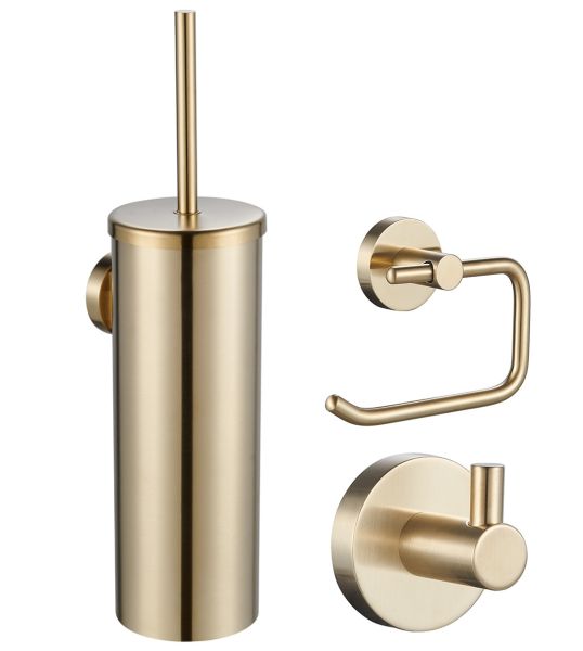 Набор аксессуаров из 3 предметов (крючок, держатель для бумаги, ершик) WONZON & WOGHAND, Брашированное золото (WW-8100-G)