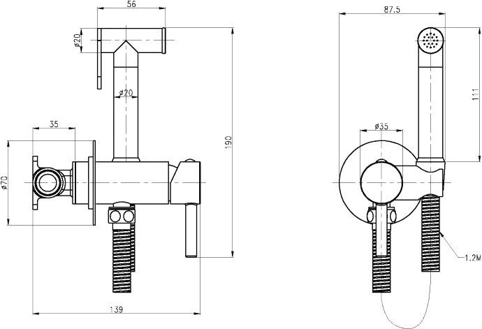 Набор для гигиенического душа CEZARES CZR-SET-DA1-ID2-FMM120-01
