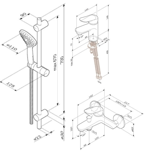 Трендовый дизайн душевого комплекта. Уникальный рисунок и диаметр форсунок – дизайн обеспечивает максимум удовольствия от душа и равномерное распределение воды при любом напоре. Продуманные детали для удобства использования: шарнирное соединение защищает душевой шланг от перекручивания, регулируемый в трех плоскостях держатель ручного душа, функция Rub&Clean для легкой очистки душевых форсунок. Один режим ручного душа.