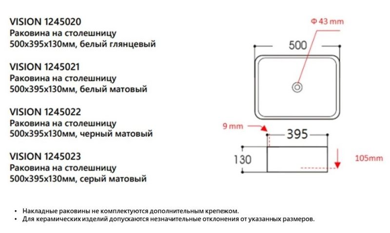 Накладная раковина Avimano Vision 1245022 50см чёрный матовый купить