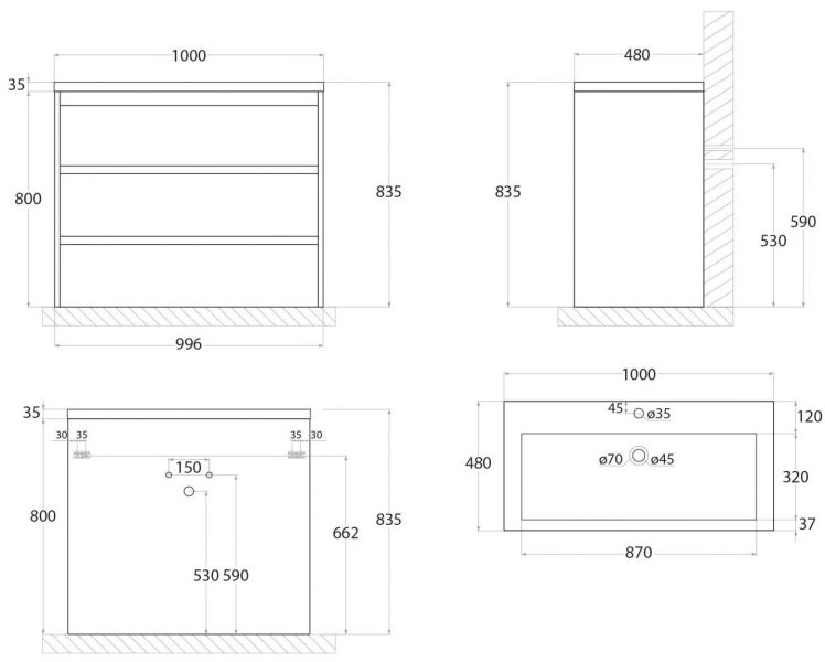 Тумба под раковину Art&Max выполнена в современном стиле и прекрасно впишется в интерьер любой ванной комнаты. Напольная конструкция обеспечивает легкий монтаж и не требует специального ремонта в помещении. Модель оснащена тремя выдвижными ящиками с доводчиками. Фасад изделия выполнен из ЛДСП.Тумба может использоваться вместе с раковиной AM-LAV-1000-MR-A.Раковина и смеситель в комплект поставки не входят и приобретаются отдельно.Особенности: