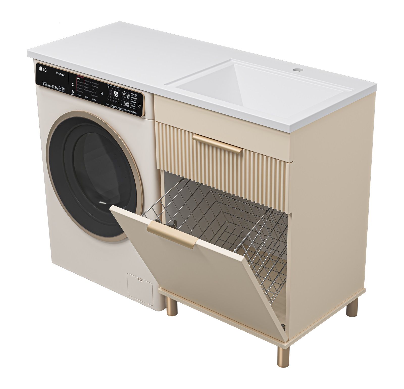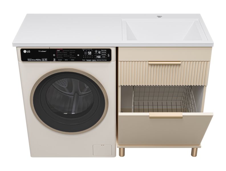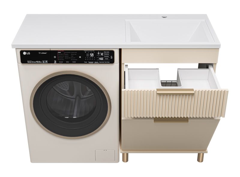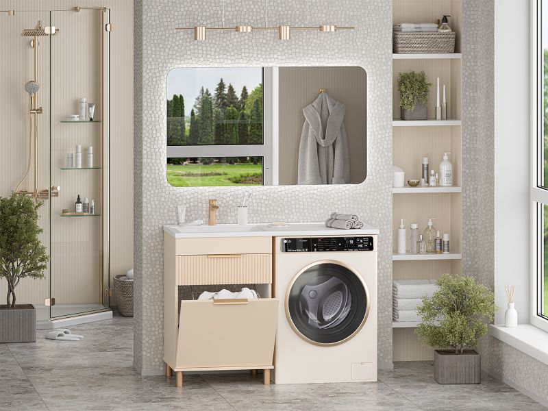 Напольная тумба под раковину Brevita Enfida 60см под стиральную машину с бельевой корзиной бежевый