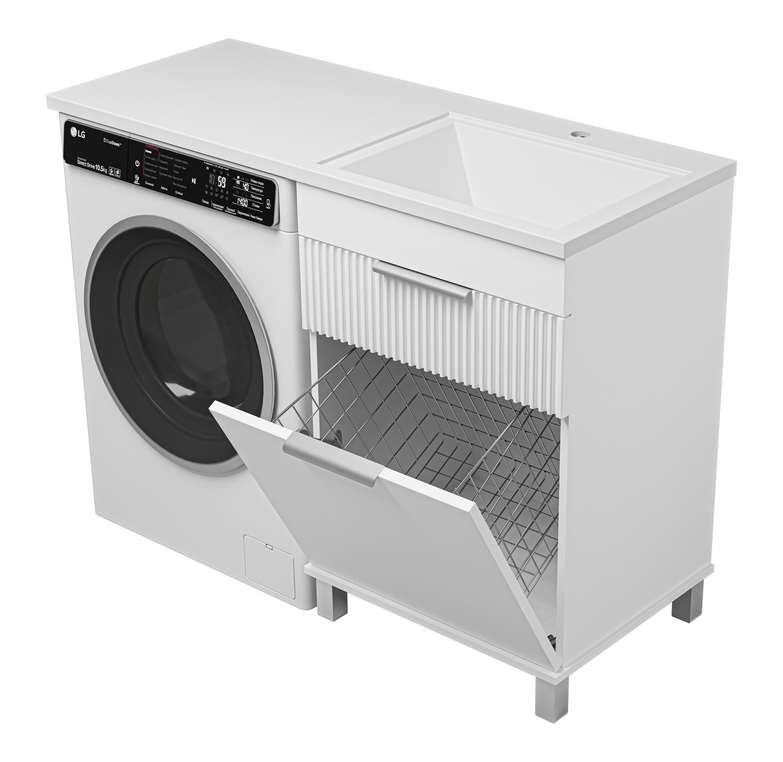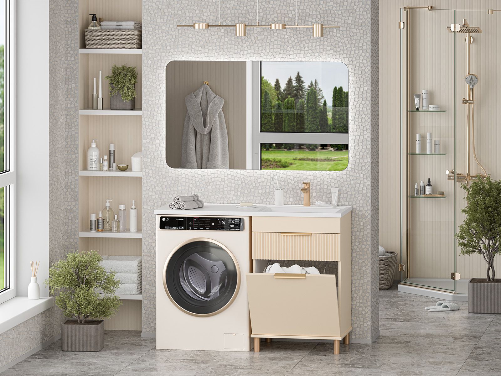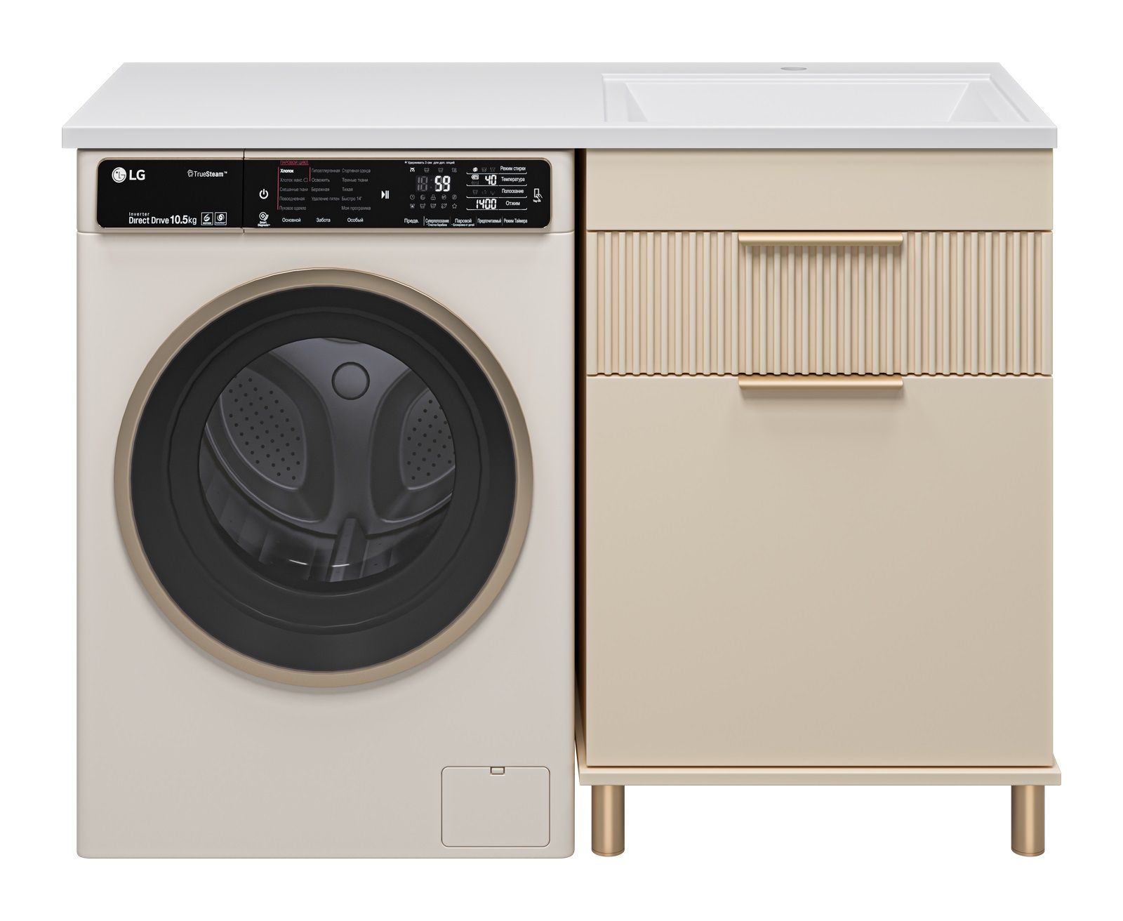 Напольная тумба под раковину Brevita Enfida 60см под стиральную машину с бельевой корзиной бежевый