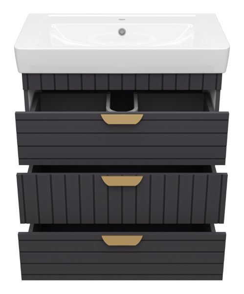 Напольная тумба под раковину – это не просто элемент мебели, но настоящее произведение искусства, которое сочетает в себе функциональность и изысканный дизайн. Изготовленная из высококачественных материалов, она гарантирует долговечность и устойчивость к воздействию влаги.Удобная система хранения позволяет размещать все необходимое для гигиенических процедур, а её продуманные размеры отлично вписываются даже в небольшие помещения. Стильные ручки и элегантные фасады придают тумбе особый шарм, а разнообразие цветовых решений позволит выбрать модель, соответствующую любому интерьеру – от классического до модерн.Мягкие линии и непринужденные формы делают тумбу неотъемлемой частью ванной, превращая её в любимое место для отдыха. Совершенное сочетание эстетики и практичности позволяет создать гармоничный и стильный интерьер, что делает напольную тумбу для ванной комнаты идеальным аксессуаром для любого дома.