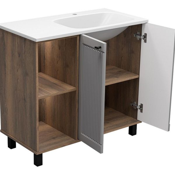 Напольная тумба под раковину Brevita Lumus 90 R УТ000025490 Серая матовая Дуб Галифакс олово купить