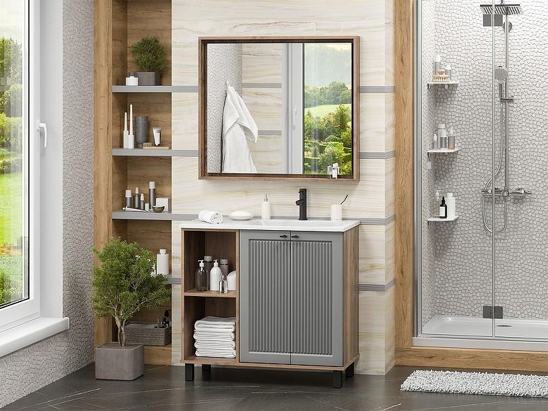 Тумба с раковиной Brevita Lumus 90 R УТ000025490 напольная с подсветкой. Lumus - свет, стиль и практичность. Коллекция Lumus создана для тех, кто ценит современные решения, функциональность и стильные акценты в интерьере. Особенность этой мебели - открытые ниши с подсветкой, которые не только создают уютную атмосферу, но и делают хранение удобнее. Контрастное сочетание оттенков придаёт коллекции выразительность: эмалированные фасады и корпус из ЛДСП идеально дополняют чёрные металлические ручки и регулируемые опоры. Все элементы продуманы до мелочей: петли с доводчиками гарантируют плавное закрывание дверей, а премиальные материалы обеспечивают долговечность и надёжность. Это мебель, которая смотрится эффектно в любом интерьере, подчёркивая внимание к деталям. Lumus - это больше, чем просто мебель. Это игра света и тени, стиль, который привлекает внимание, и комфорт, который ощущаешь каждый день. Характеристики: Тумба под раковину: