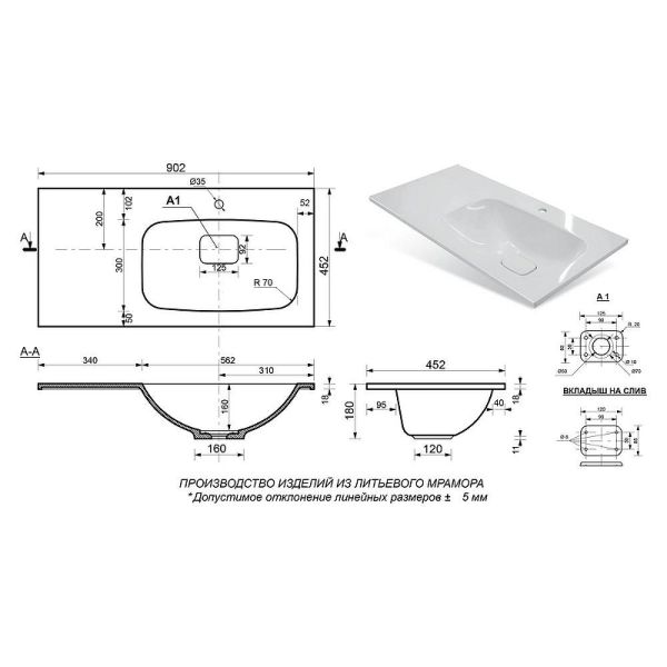 Материал: литьевой мрамор.