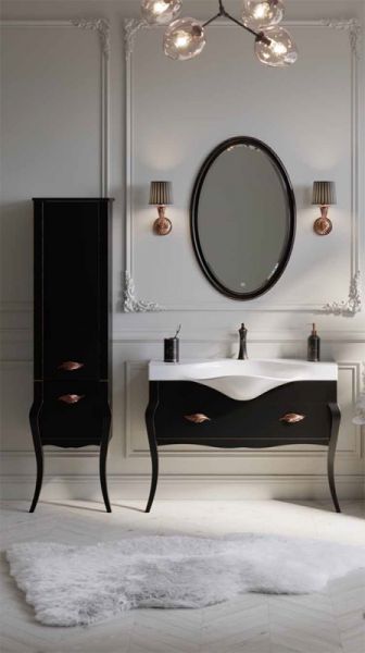 Комбинированная тумба под раковину Clarberg Borgia 115 BOR0111BLK с одним ящиком выполненная в духе современной классики, отличается утонченными и изящными формами, которые подчеркивает патина под медь. Ручки в виде листьев эффектно дополняют образ мебели. Ящик тумбы оборудован системой полного выдвижения LegraBox австрийской фирмы Blum.Технические данные:Цвет: слоновая кость, патина медь.