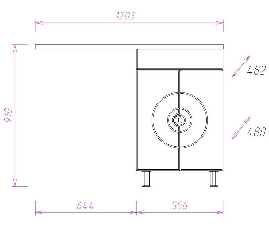 Размеры тумбы без учета раковины и ножек: 56x48x78 см.