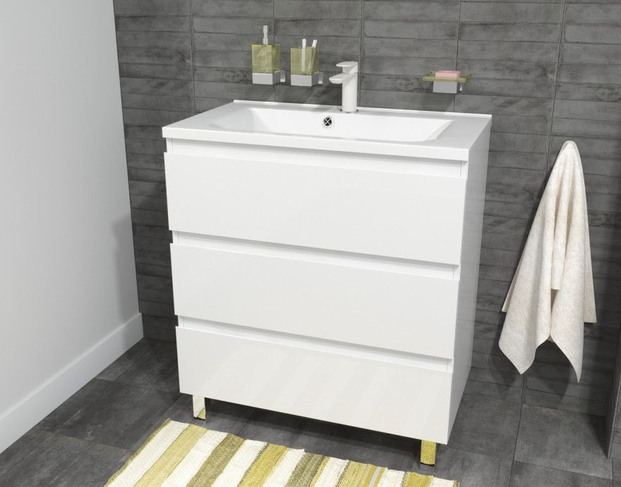 Современный дизайн серии Bali создан для ценителей минимализма. Четкие геометрические формы, бесшумное закрывание ящиков, вместительная тумба с верхним и нижним ящиками создает дополнительное пространство, где будут надежно скрыты от влаги банные принадлежности.