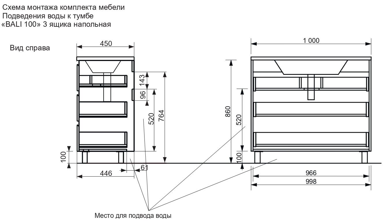 Напольная тумба под раковину Эстет Bali New ФР-00009970 100см три ящика белый купить