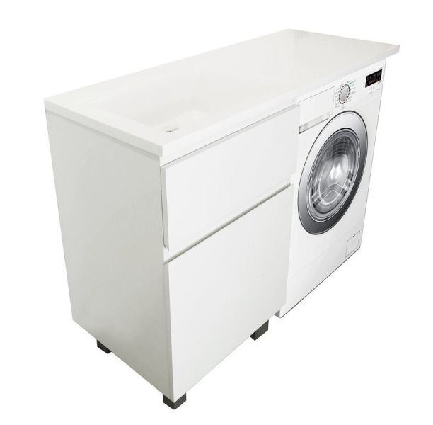 Коллекция мебели для ванной комнаты Dallas Luxe покоряет своей удивительной простой и функциональностью. Стильная лаконичная тумба, укомплектована раковиной из литьевого мрамора с удобной чашей. Стиральная машина устанавливается под столешницей, за счет чего экономит место в ванной комнате. В тумбе имеются два ящика. Нижний ящик тумбы – широкий и вместительный – предназначен для крупных предметов, а в верхнем имеется специальная организация пространства, позволяющая хранить мелкие вещи.
