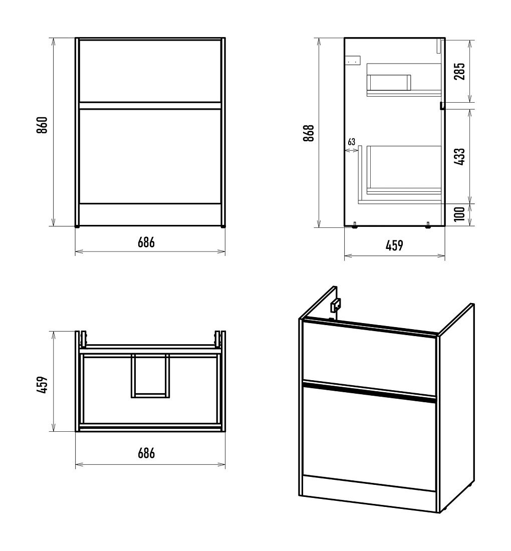 Напольная тумба под раковину Misty Ингрид УТ000026853 68.6 см белый