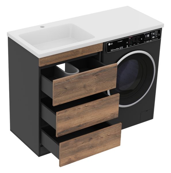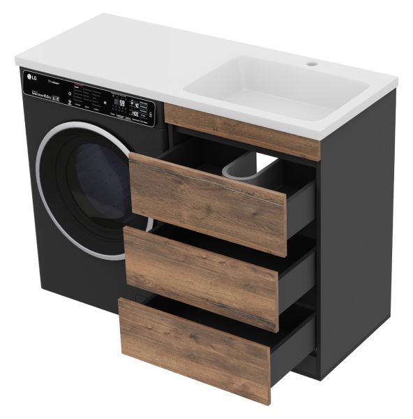 Напольная тумба под раковину Misty Коломбо под стиральную машину 60см дуб Галифакс/антрацит