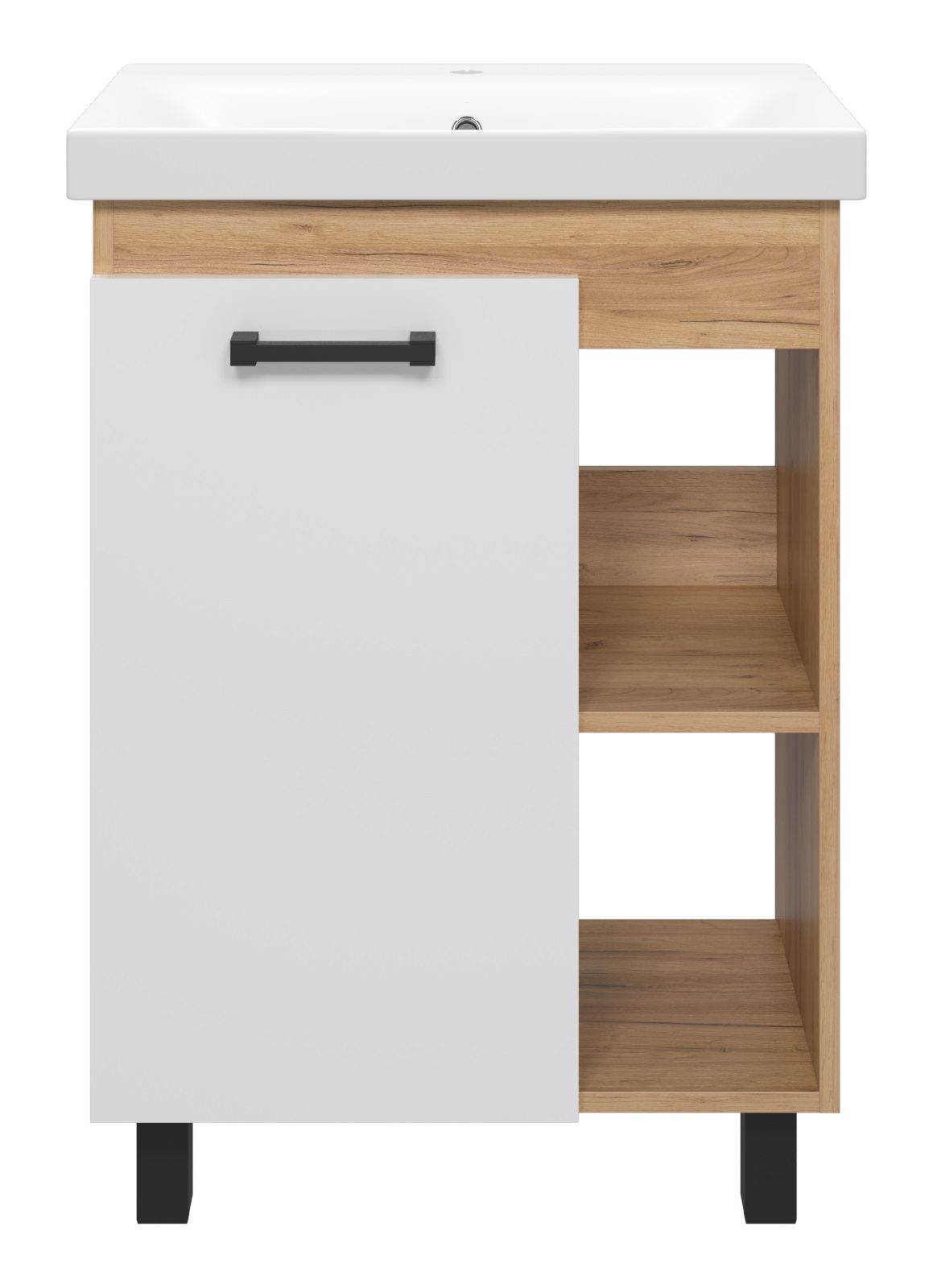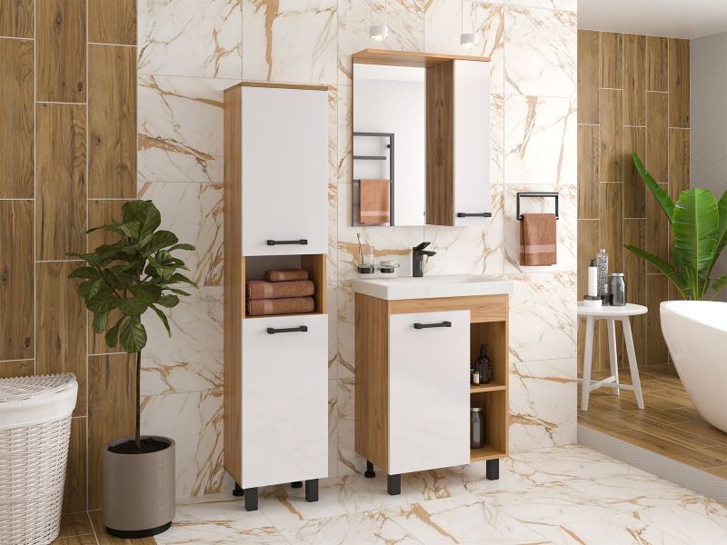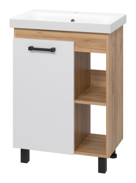 Напольная тумба под раковину Misty Крафт 60см белый/дуб крафт золотой