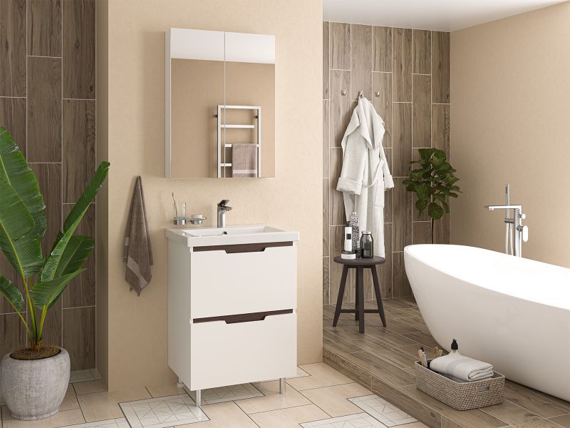 Напольная тумба под раковину Misty Лайм 60см белый/венге купить