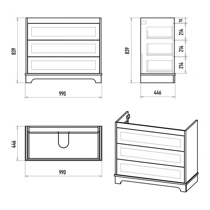 Напольная тумба под раковину Misty Ларго 100 см П-Лар-07100-01-3Я Подробнее