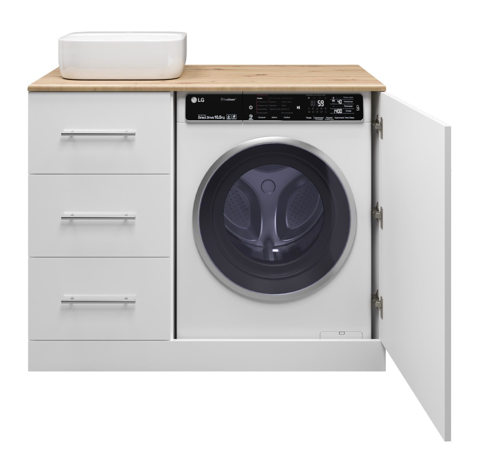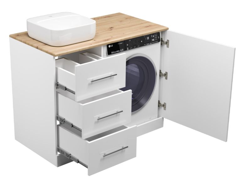 Напольная тумба под раковину Misty Респект под стиральную машину 110см левая белый/дуб Артизан