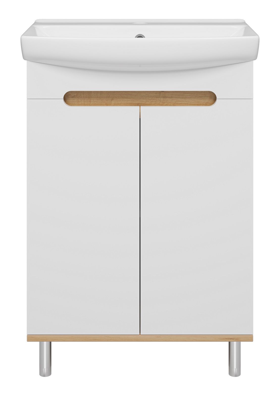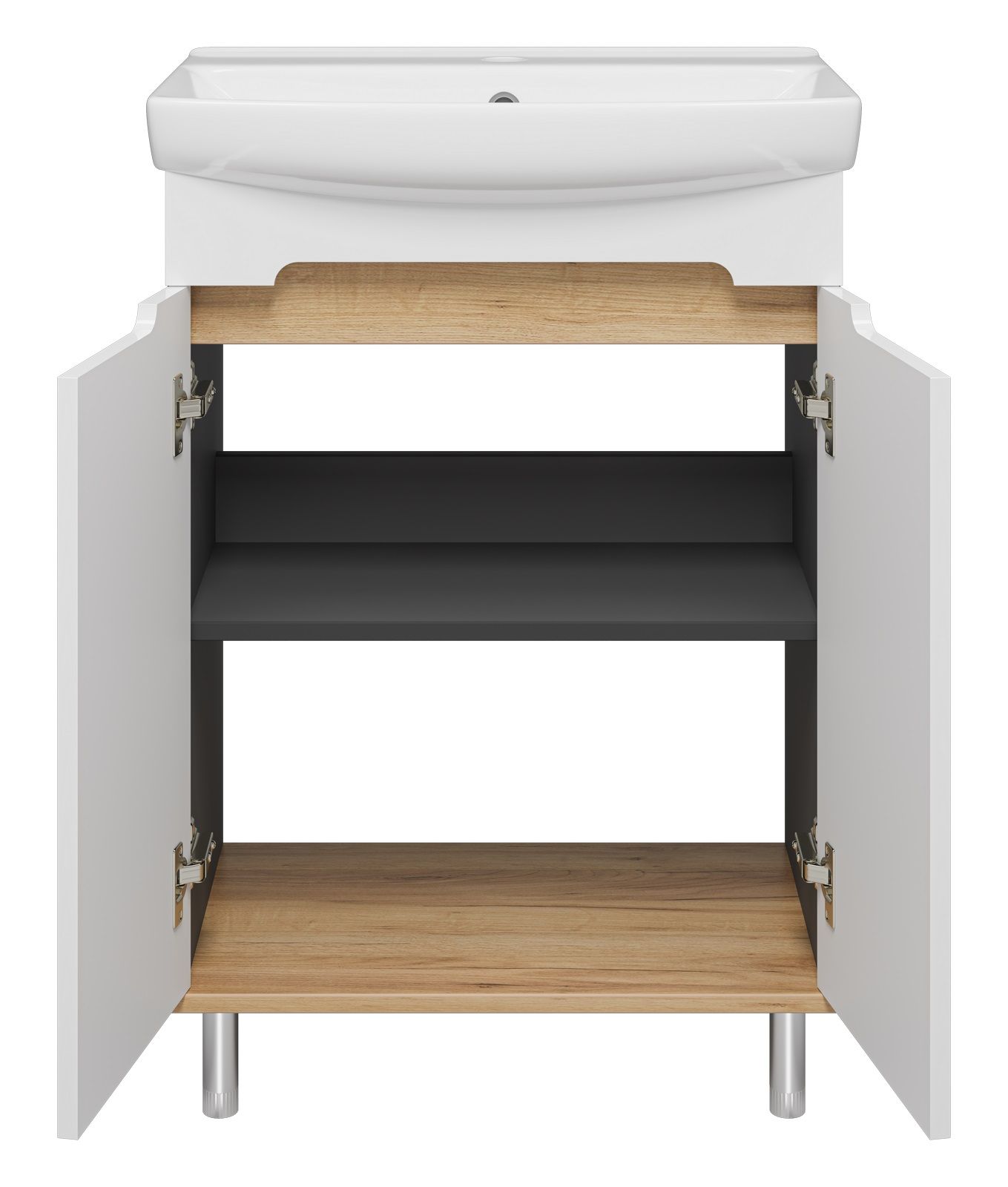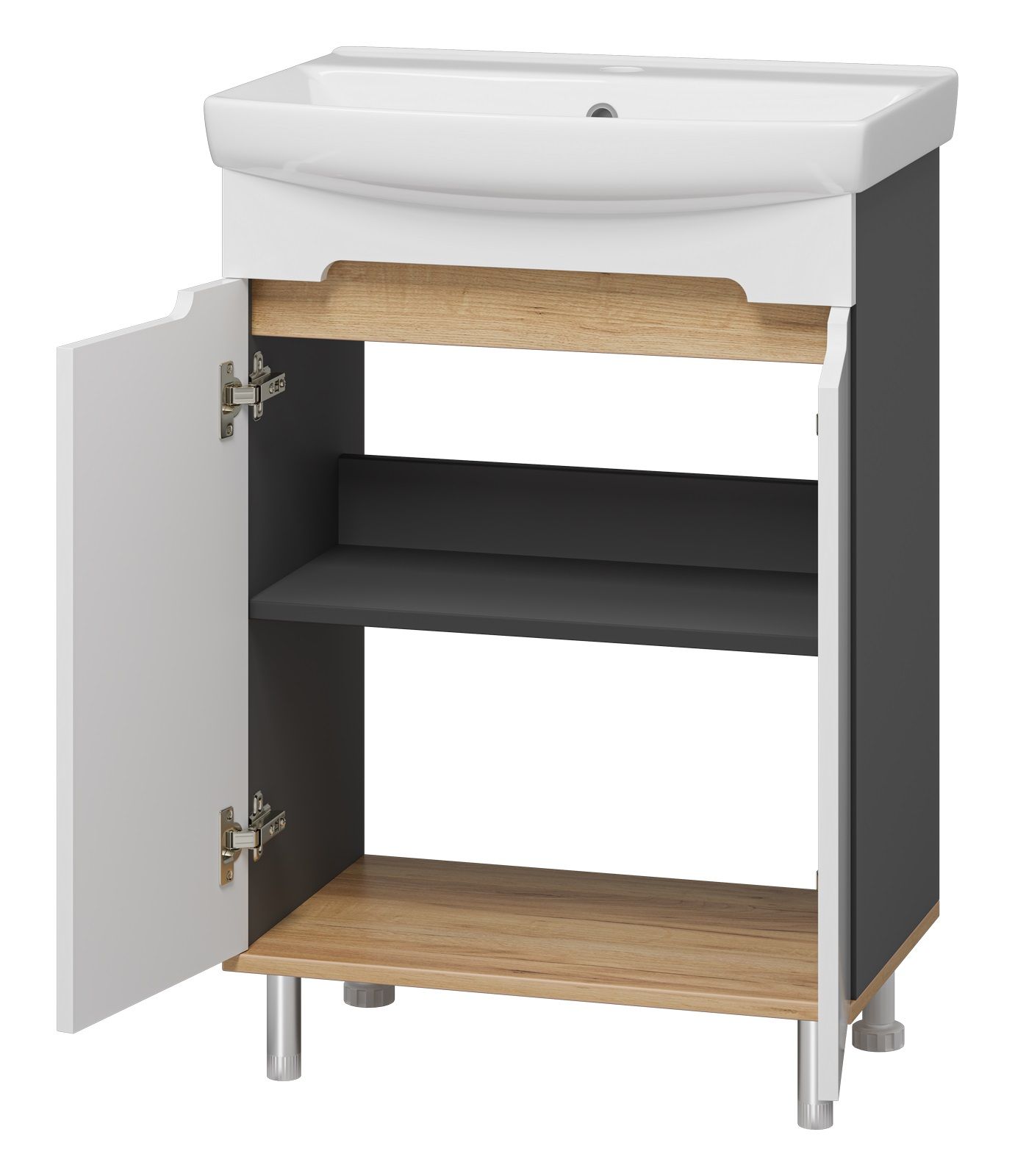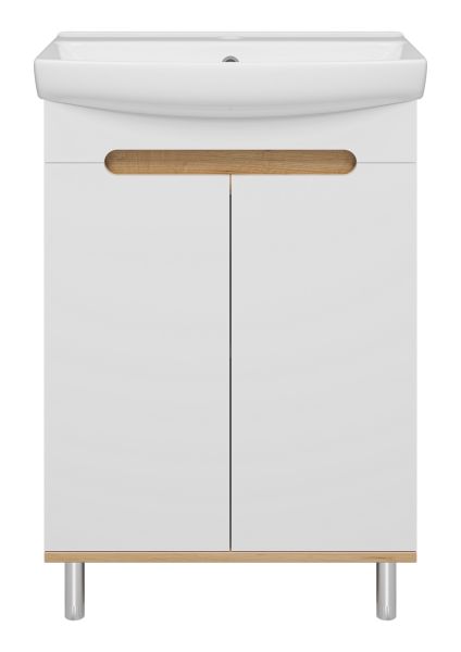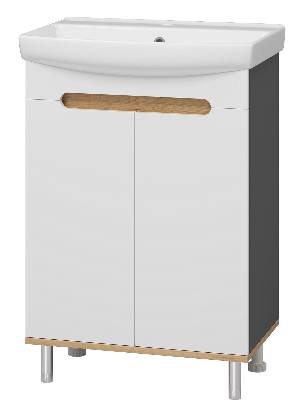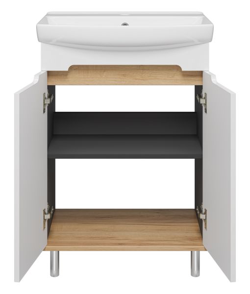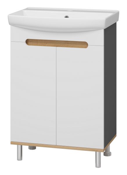 Напольная тумба под раковину Misty Сканди 60см белый/дуб крафт золотой/антрацит