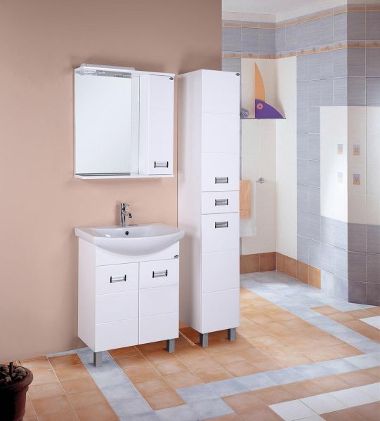 Размеры тумбы без учета раковины и ножек: 56x31x68 см.