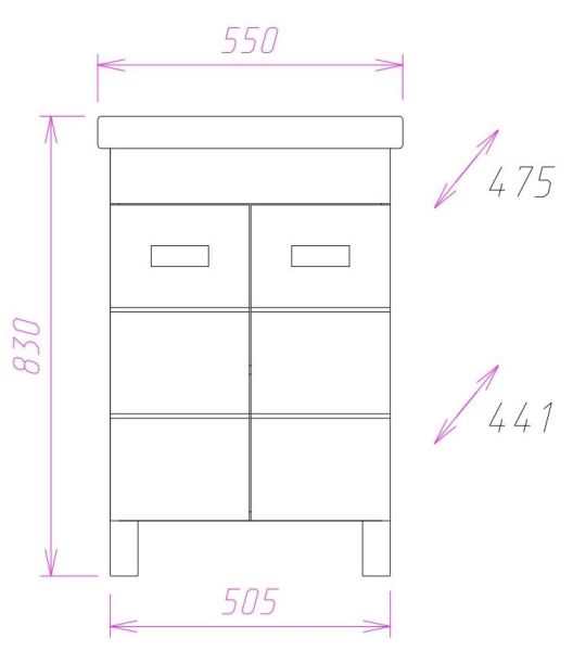 Размеры тумбы без учета раковины и ножек: 50x44x67 см.