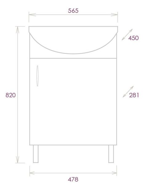 Размеры тумбы без учета раковины и ножек 48x28x68 cм.