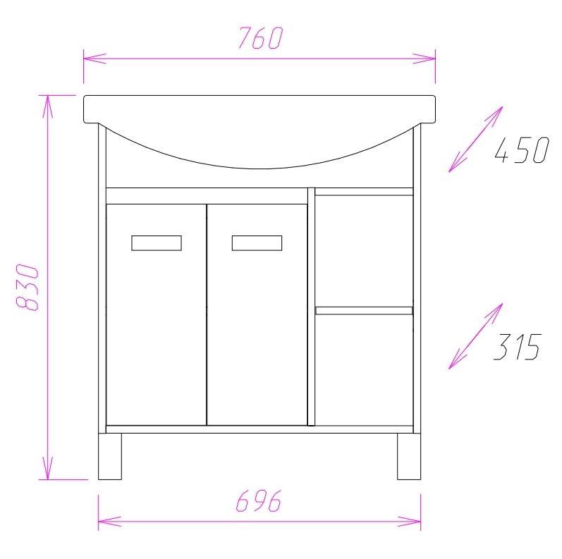 Размеры тумбы без учета раковины и ножек: 70х31x68 см.