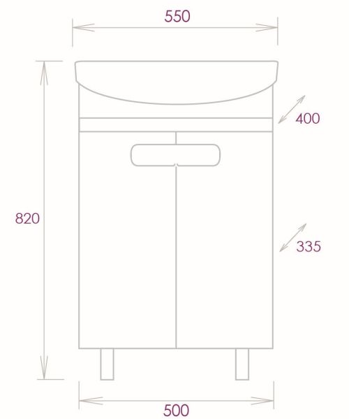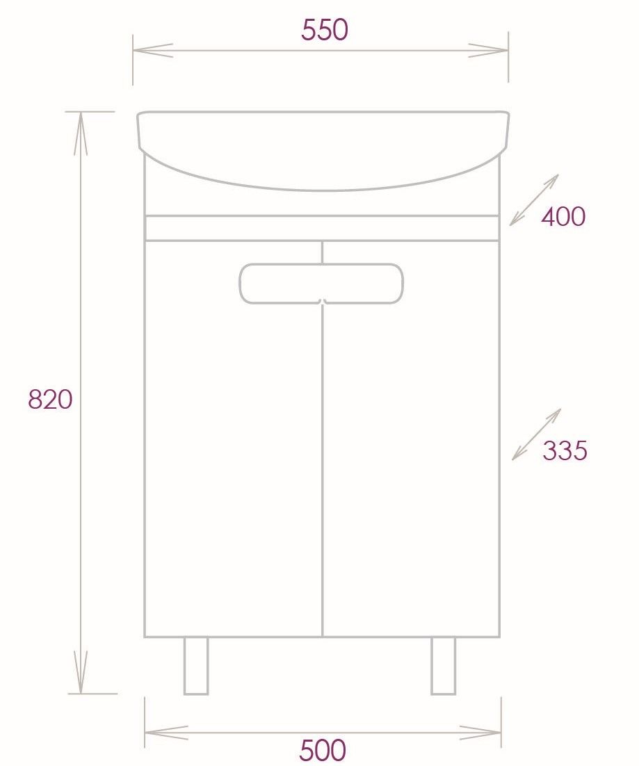 Размеры тумбы без учета раковины и ножек 50x33x68 cм.