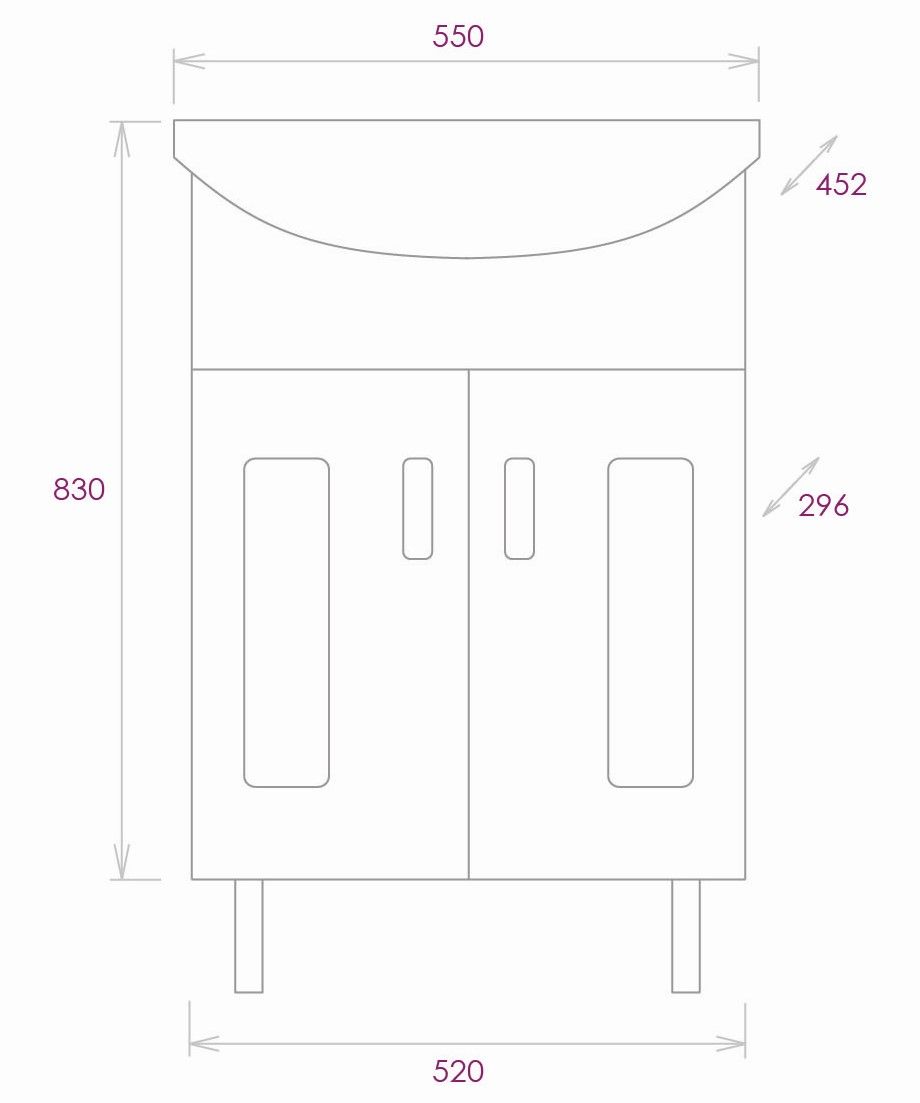 Размеры тумбы без учета раковины и ножек: 52x30x68 см.
