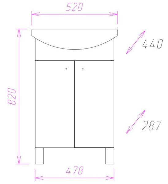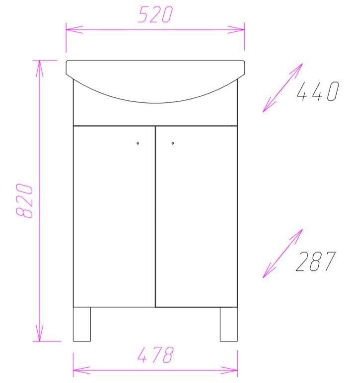 Размеры тумбы без учета раковины и ножек: 48х29х68 см.