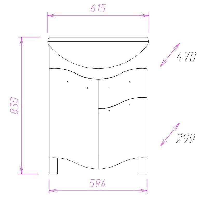 Размеры тумбы без учета раковины и ножек 59х30х75 см.