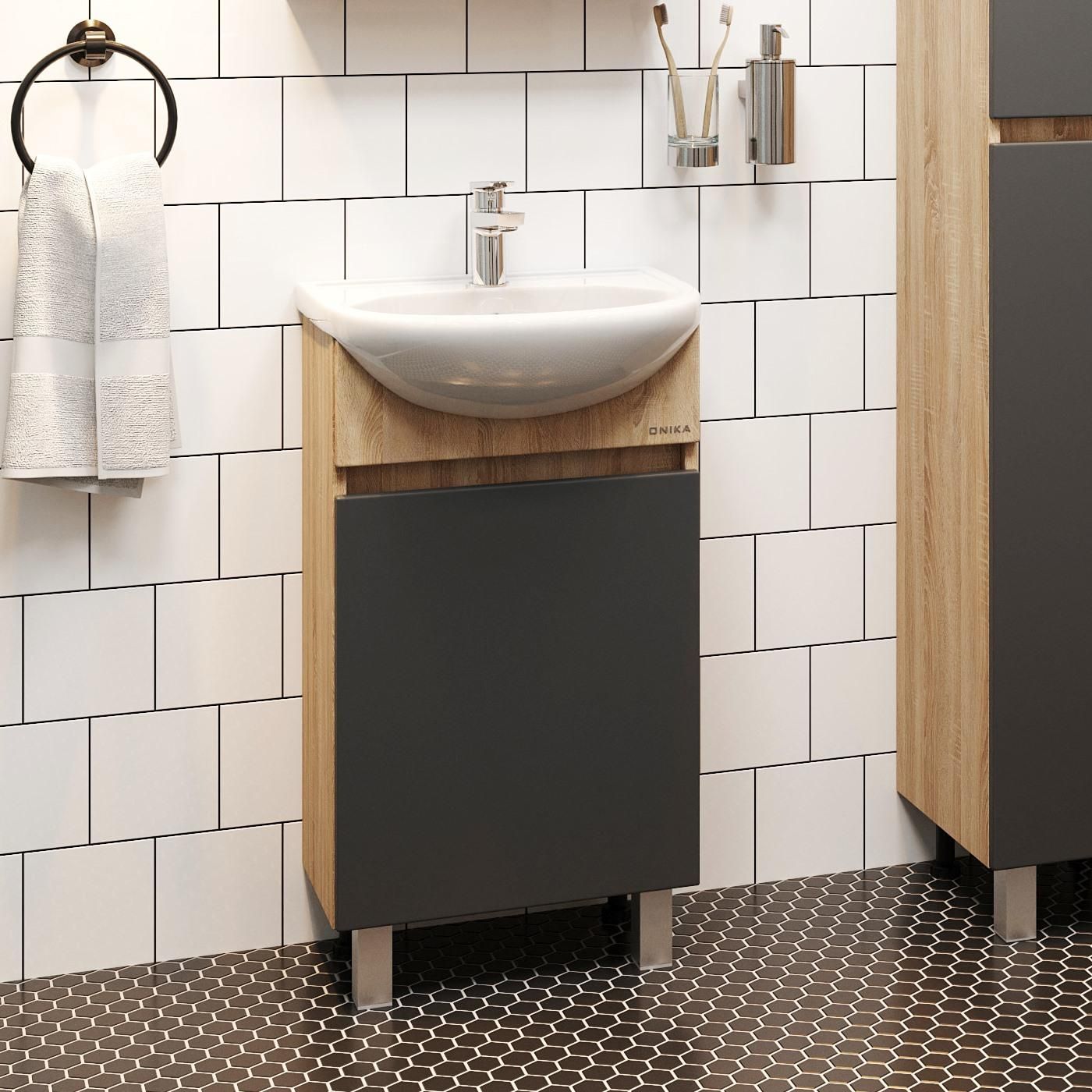 Напольная тумба под раковину Onika Милтон 104512 45см серый/дуб сонома купить