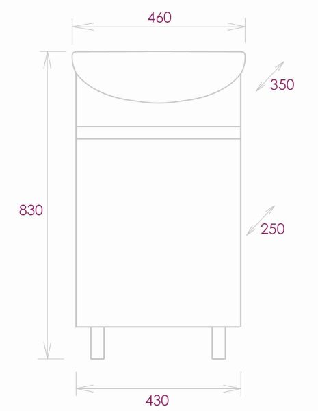 Размеры тумбы без учета раковины и ножек 43х25х68см.
