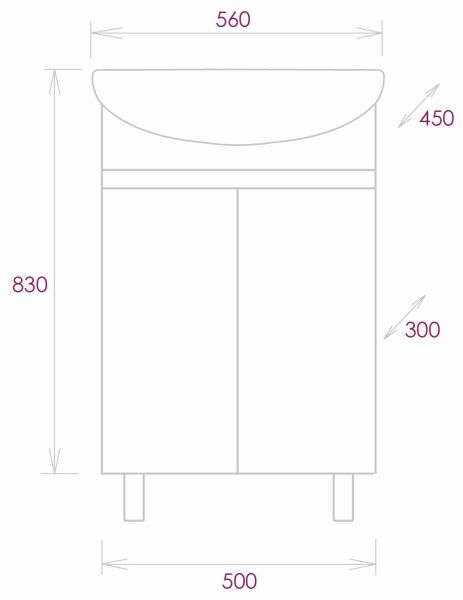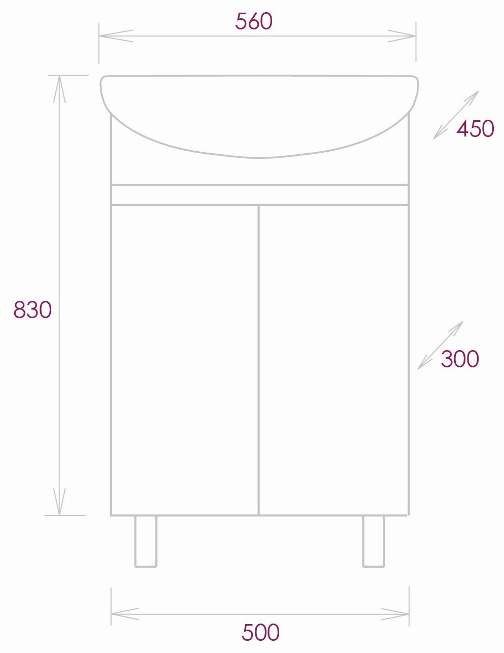 Размеры тумбы без учета раковины и ножек 50х30х68см.
